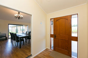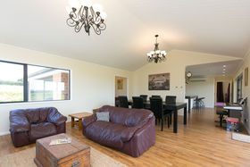 Designed and completed in late 2015, we present a unique opportunity to the Lifestyle market. The house has been set back from the road to maximise the peace and privacy of the four hectare gently rolling block whilst providing distant sea and mountain views. High specifications were a large part of the design brief and this is clearly evident in the finish and list of extras. These include a Rowson Kitchen/scullery with top quality granite and appliances, solar hot water system, comprehensive heating with transfer, over insulation, two insinkerators and solid core doors just to name a few. Strategically placed windows and doors allow for an easy sight line and access to the sheltered patio for entertaining.