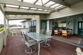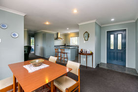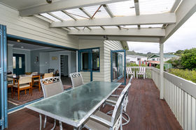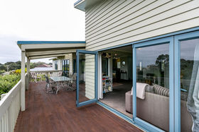 This welcoming, modern home is located in the heart of Mokau, an idyllic escape an hour north of New Plymouth. Famous for its whitebait and outstanding surf breaks, this tranquil coastal village on the wild west coast is a local treasure. Set back from the road, this three-bedroom property is on the market fully furnished. Just a short stroll from the beach, this elevated home is sited on a private 1004m2 section and currently enjoys rental returns on book-a-bach, so the option is there to gain income from up to 8 guests at a time. With a picturesque view of the valley and even a small peek of the sea from the expansive upstairs balcony, the open plan design with kitchen, dining and living (plus additional sitting room) capitalises on the restful outlook. Wake to the sound of seagulls and the scent of the salty sea, and in winter cosy up to the wood burning fireplace. The master comes with en suite, there's a generous double garage with internal access to store everything you need for the beach and when the tide ebbs, you're within walking distance to friendly, local cafes. And even better, this world class coastal escape doesn't cost the earth.