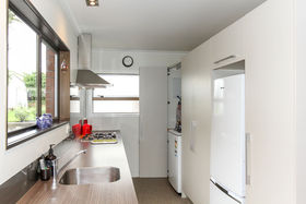 The sunny lounge flows out to a private deck and a lovely courtyard - complete with raised gardens, a handy garden shed and access to the single garage.