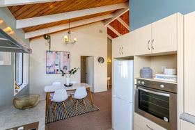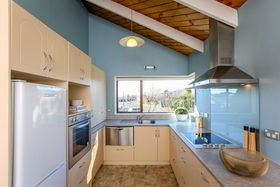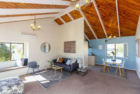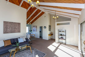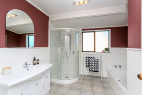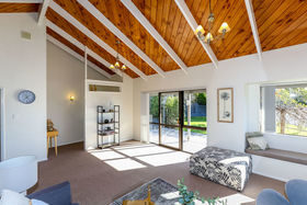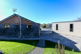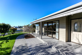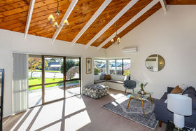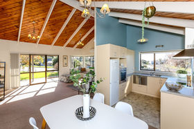 Open plan living areas feature cathedral ceilings for an extra sense of space, and flow to a veranda. Three bedrooms (master ensuite), heat pump, easy care exterior, and well established grounds. Single garage with generous workshop space.