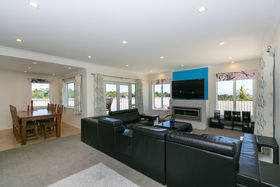 Unstack the children so they can spread out to their own personalised rooms with a large bathroom on each level for their use and on the second level an office nook provides a homework space. A large office or second lounge separates the main living area, providing children and adults alike an area to close off from the other activities. The kitchen spreads out along the back wall highlighting a stunning unique splash back, with the addition of an ample scullery with considerable bench and cupboard space.