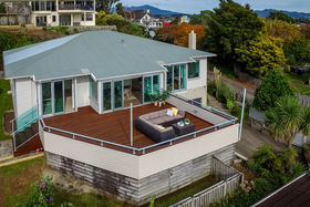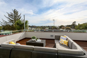 The stunning designer kitchen is positioned centre stage with two large living areas on either side providing plenty of living options. The tiled kitchen/dining flows out through large doors to an incredible entertainer's deck, beautifully elevated to capture abundant sun and perfectly designed to take in the distant sea views beyond.